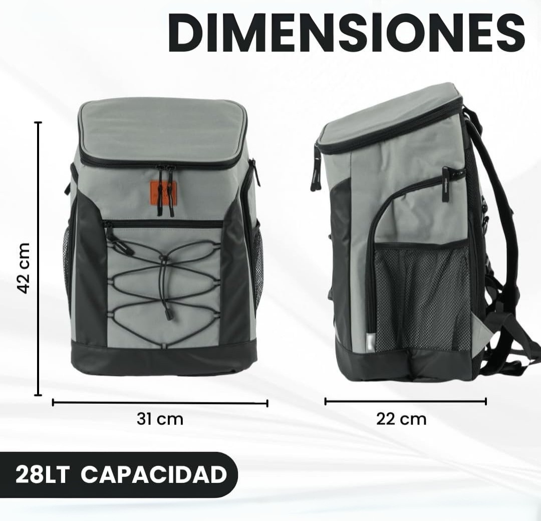 Con sus 28 litros de capacidad, permite transportar botellas, tápers, fruta, snacks y más. Ideal para salidas de día o picnics para hasta 4 personas.